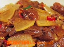 3、在肉片炒到六成熟时加入切好的白萝卜片进行炒制,在萝卜半熟的时候加入适量的食用盐,然后再加入少量的清水,最后时取几个大蒜拍成蒜泥放在炒好的萝卜中,就可以出锅食用了。